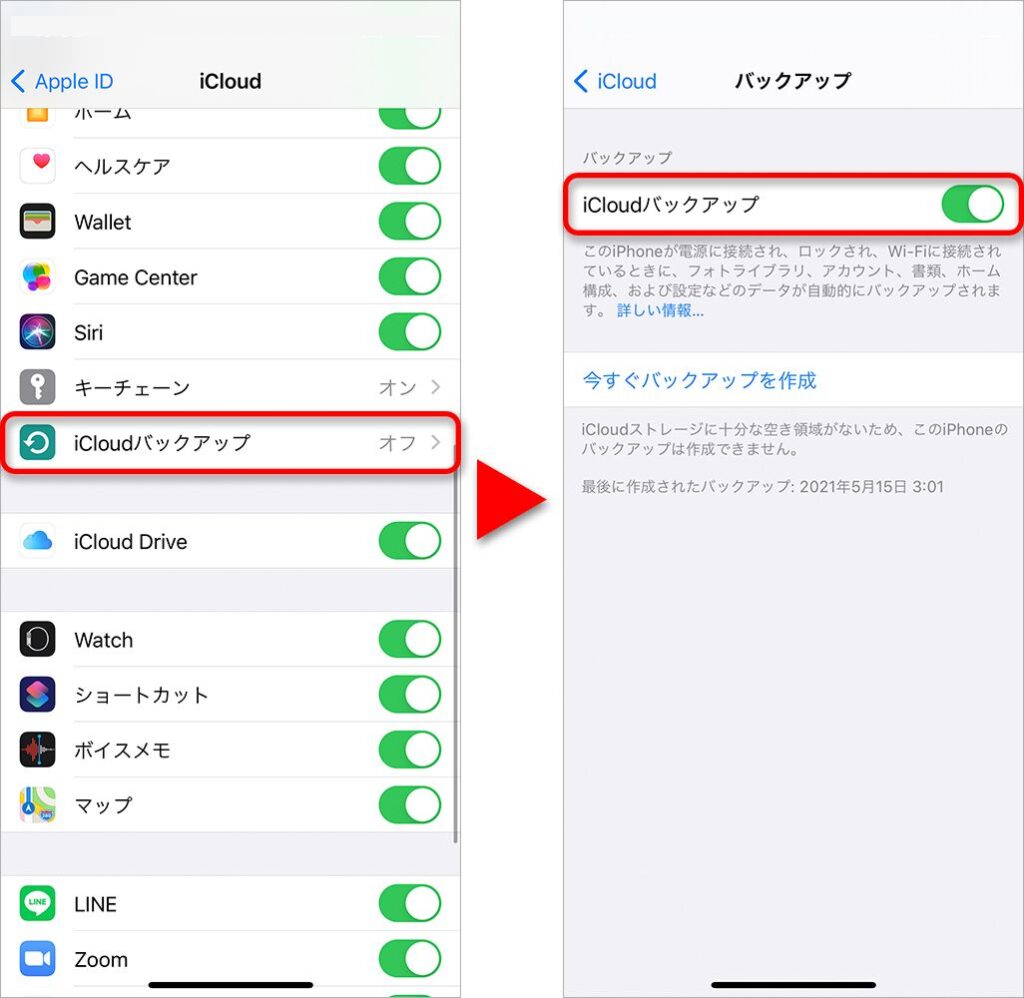 (4)LINEのその日までのトークデータをLINEアプリでiCloudへバックアップ