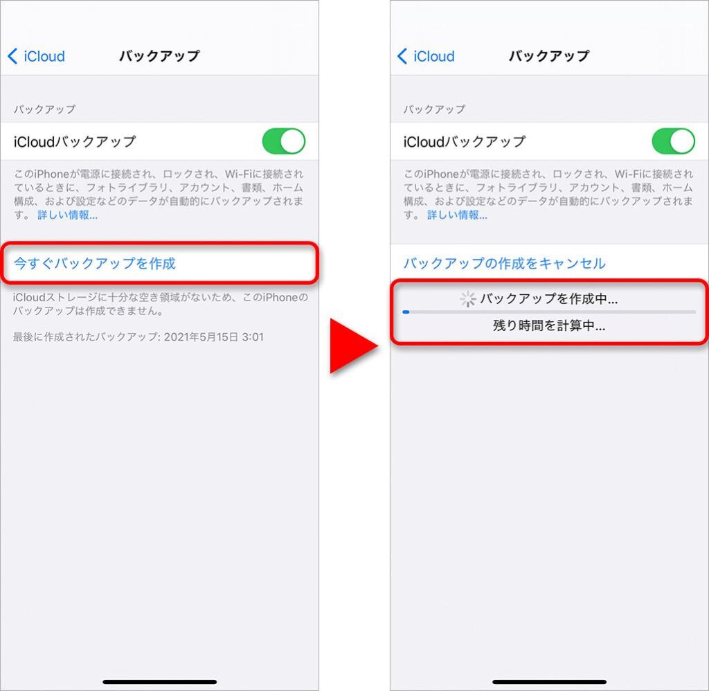(6)「今すぐバックアップ」をタップして、バックアップ用のPINコードを入力してバックアップを行う