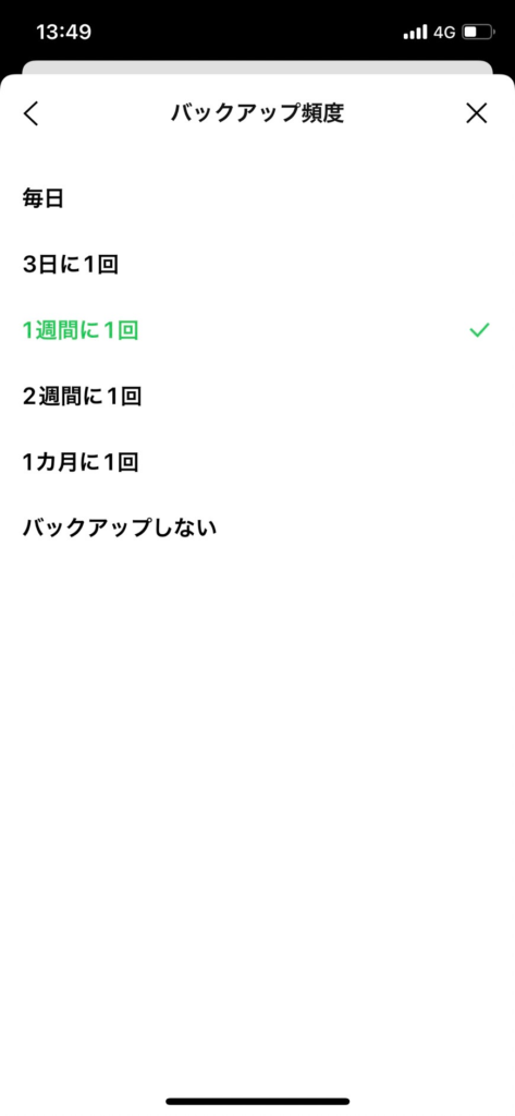 「バックアップ頻度」をタップし、自動でバックアップする頻度を選択する