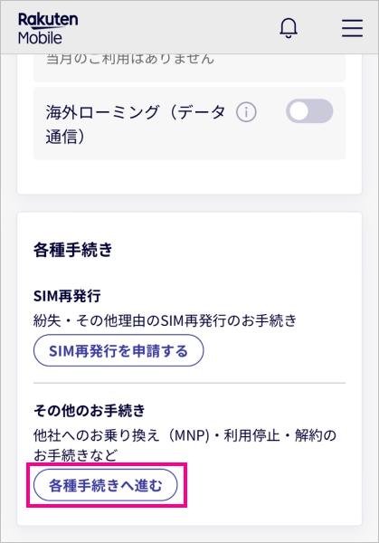 (3)各種手続きの「その他のお手続き」から「各種手続きへ進む」を選択する