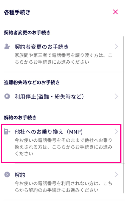 (4)「他社へのお乗り換え(MNP)」を選択する