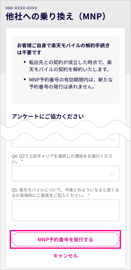 (5)必要事項を入力し、「MNP予約番号を発行する」をタップ