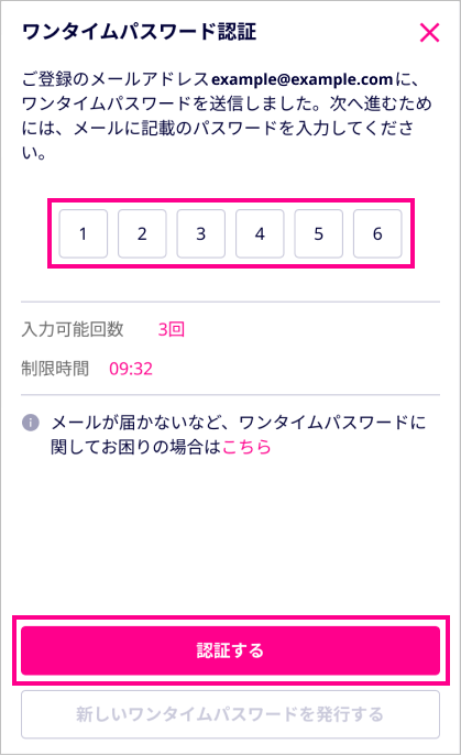 (6)ワンタイムパスワードを入力し、「認証する」をタップ