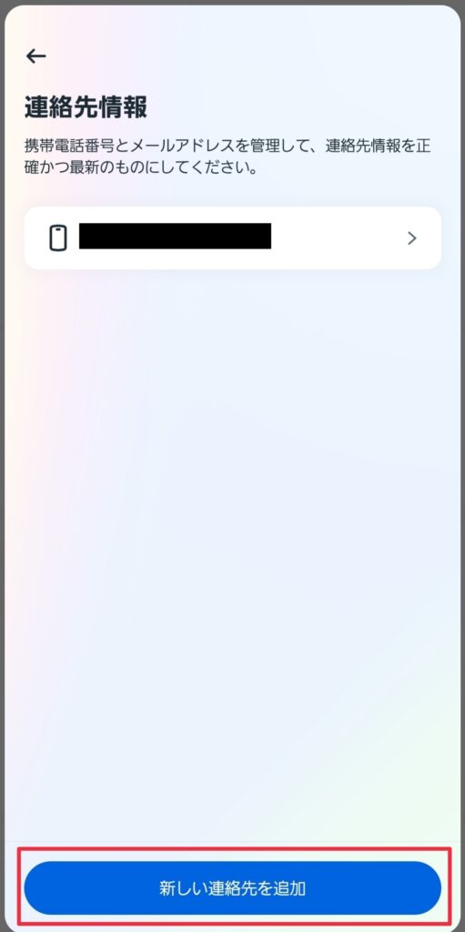 (4)古くなっていた場合は「新しい連絡先を追加」を押して追加したい項目をタップして変更を行う。