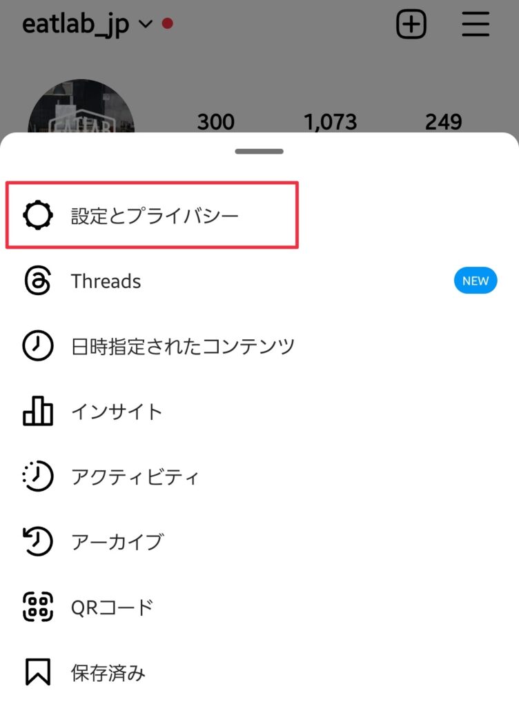 (2)右上の三本線をタップしてメニューを開き、「設定とプライバシー」をタップする。