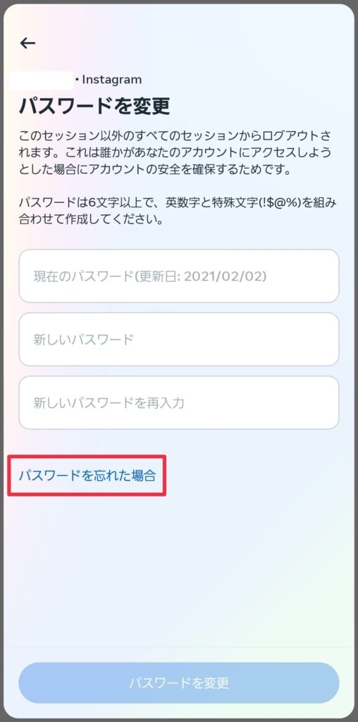 (6)「パスワードを忘れた場合」をタップし、指示に従いパスワードの再設定を行う。