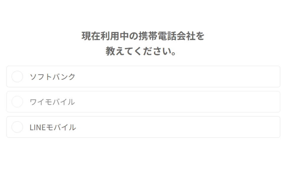 (5)「現在利用中の携帯電話会社を教えてください」で該当するものを選択