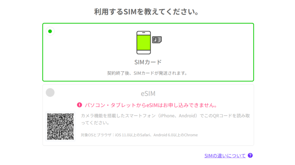 (5)「利用するSIMを教えてください」で該当するものを選択
