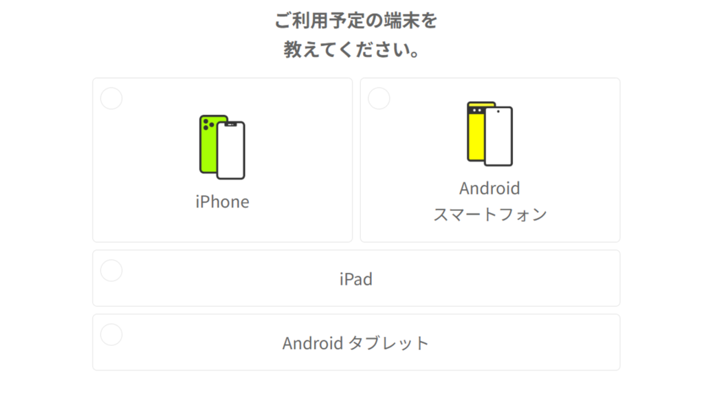 (6)「ご利用予定の端末を教えてください」で該当するものを選択