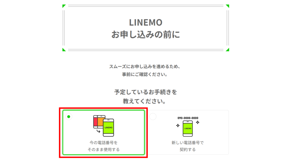 (4)「予定しているお手続きを教えてください。」で「今の電話番号をそのまま使用する」を選択