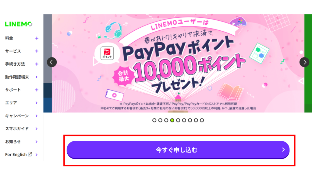 (2)LINEMO公式サイトにアクセスする