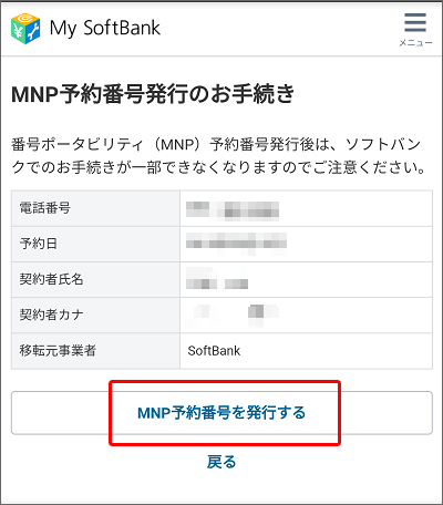 (4)アンケートに回答し、「MNP予約番号を発行する」をクリック・タップすると発行される