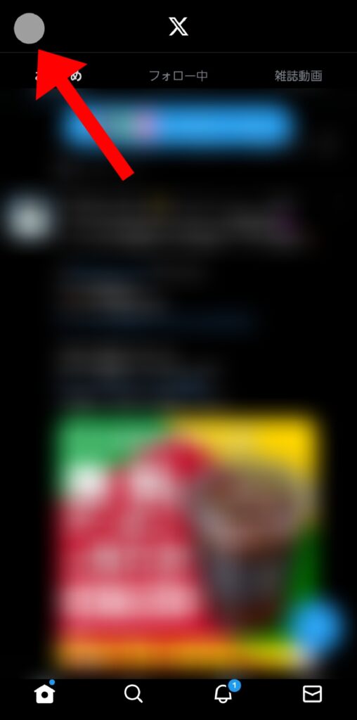 (1)X(Twitter)のアプリを開く。