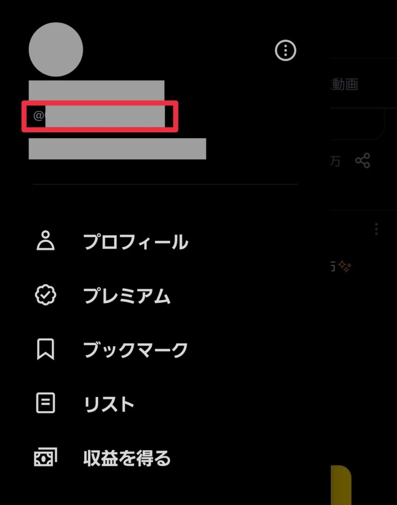 (3)名前の下にX(Twitter)ID(@○○××等)が表示されるのでそれを控える。