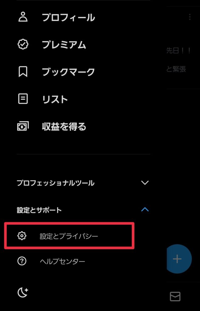 (5)「設定とサポート」の「設定とプライバシー」を開く。