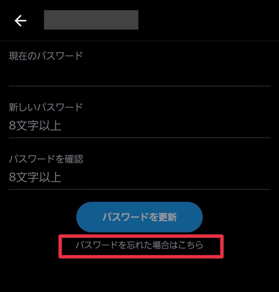 (9)変更画面にならない場合は前の画面に戻り「パスワードを変更する」から「パスワードを忘れた場合はこちら」をタップして指示に従い、パスワードの再設定をして控える。