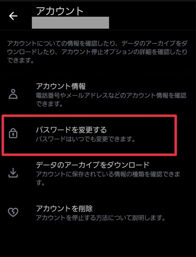 (8)パスワード確認は「アカウント」に戻り、「パスワードを変更する」をタップしてパスワードを入力し、更新できなければ正しいパスワードなので控える。